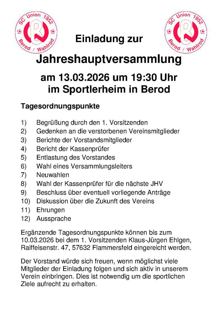 Der Verein sucht für sein Sportheim einen Vereinswirt/ -in.